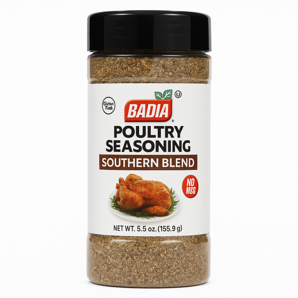 🍗🌿 أضف لمسة جنوبية أصيلة لأطباق الدجاج مع توابل الدواجن من باديا! مزيج مثالي من الأعشاب والتوابل الطبيعية، خالٍ من الجلوتين وبدون MSG. يمنحك طعمًا غنيًا ونكهة لا تُقاوم في كل وصفة!